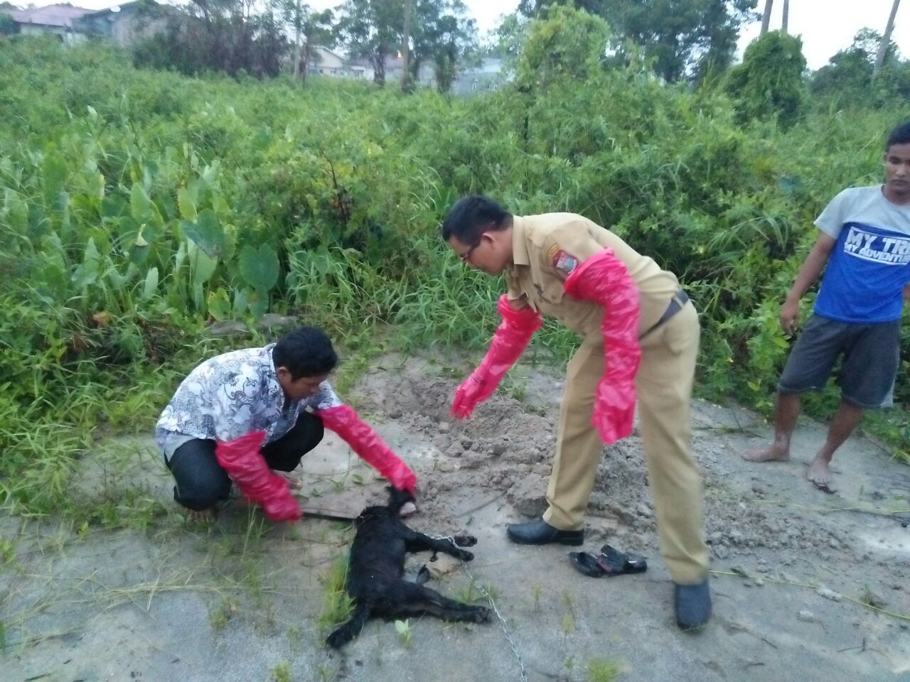 Anjing yang telah mati tersebut diambil sampel (kepalanya) sesuai dengan SOP untuk dikirim ke Balai Veteriner Medan untuk diuji laboratorium pada bagian otaknya.